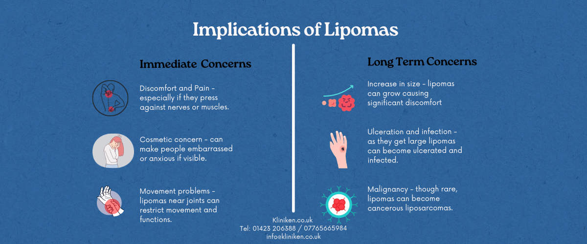 Implications of Lipomas While lipomas are generally harmless, they can present immediate concerns in certain scenarios: